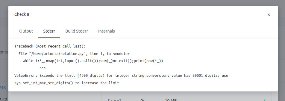 Also, for the past couple of days toph’s submissions are hidden. So I couldn’t see @touhidurrr 's approach on how he did it afterwards. But he used Pypy, which had python 3.6 (which did not have that integer limit).